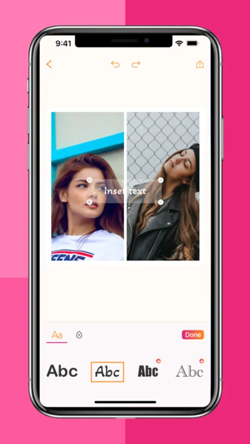 - Add different text styles and choose the colour you like to make your pictures look lively.