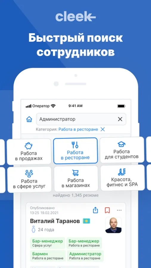 - Свежие резюме соискателей, удобный формат поиска и найм сотрудников менее чем за 24 часа.