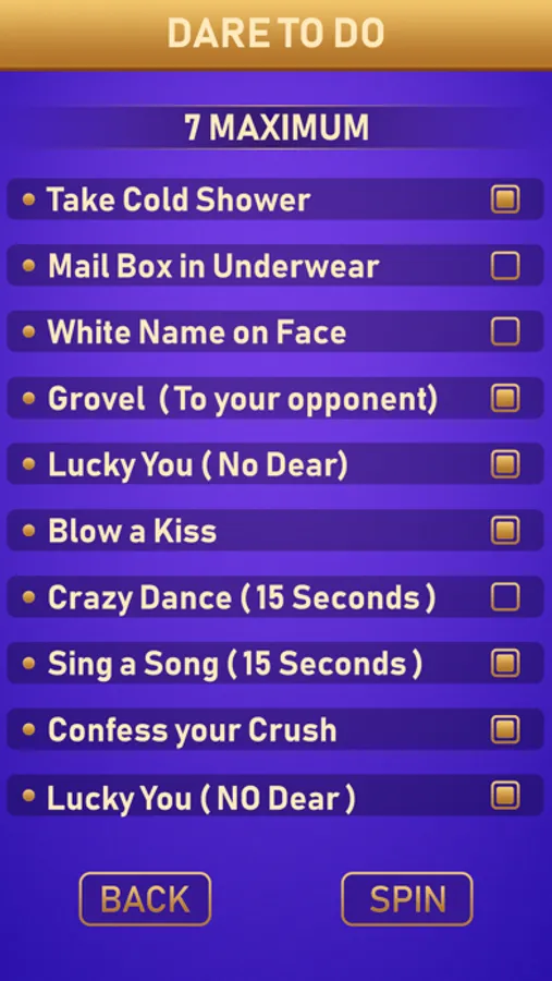 Just swipe or click the spin wheel after selecting 7 dares of ur your choice from your favourite category and let the Lucky Spin Wheel Dare Roulette give u a random result each time you spin magic fortune wheel Roulette.