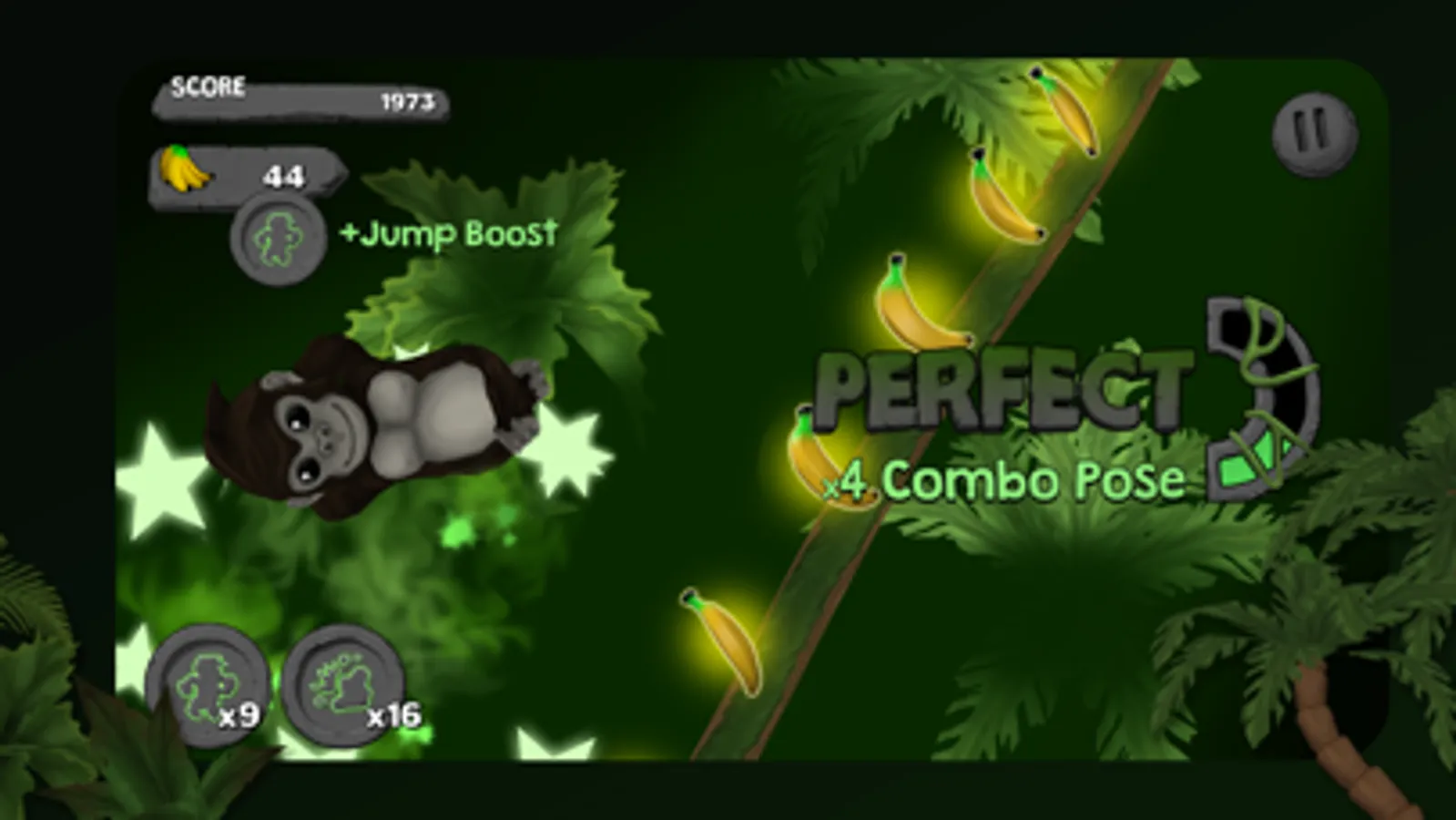 Whether you swing by vine or launch yourself into the air with a twist, conquering this jungle is all about style. Dodge obstacles and pull off unique combos once you’re airborne. Chain them together to unlock boosts that help along the way. Collect bunches of bananas for the ultimate high score and become the master of the jungle rush!