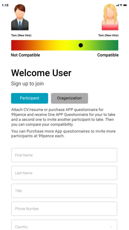 TeamPlayerHR is an Innovative Tool/Questionnaire created by human behavioral scientist with the technology designed to compare compatibility using a proprietary Intrinsic Matrix (IM) Profile. All participants that take the questionnaire are issued an IM Profile ID number, a unique identifier that can be placed on one’s CV/Resume and used as a reference for future compatibility comparisons. With TeamPlayerHR, users can compare the compatibility of one individual to that of other individuals, be they potential candidates, prospective team members, or an entire organization— all to determine “best fit”. In short, TeamPlayerHR is an indispensable tool for putting compatible teams together!
