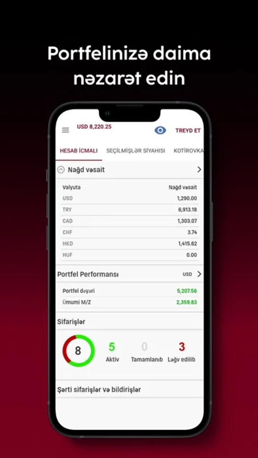 • Sifarişlərin idarə edilməsi və treydinq nəticələrinə nəzarət