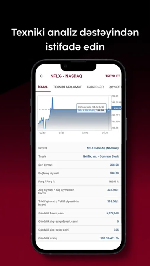 • Seçilmiş alətlərlə bağlı əsas xəbərlər, statistika və əsas maliyyə məlumatları