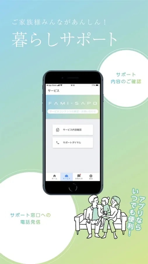 ファミサポは「働く人」と「そのご家族様」の暮らしに安心をお届けする、新しいカタチの福利厚生サービスです。このアプリでは、各種サービスを便利に・簡単にご利用いただける他、アプリ限定での特典もご利用いただくことができます。