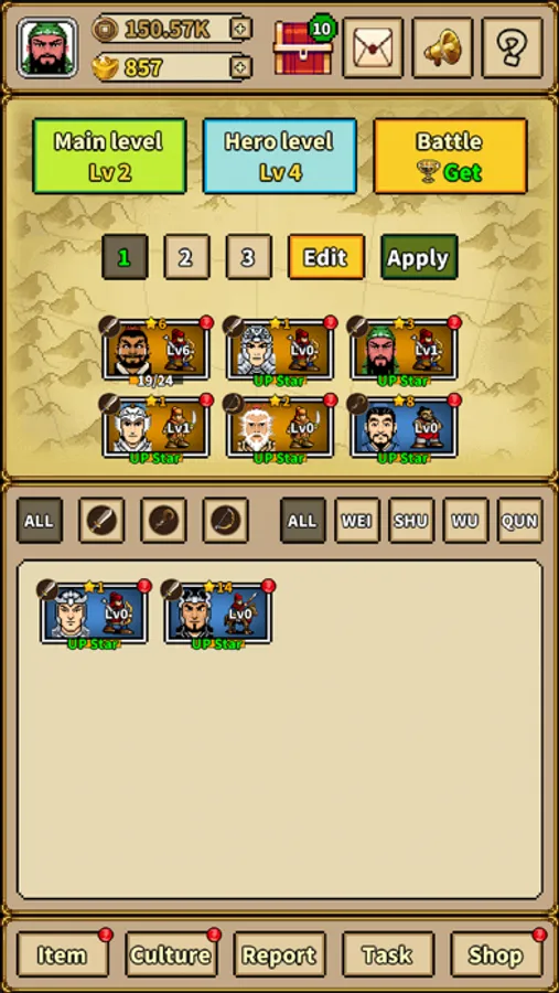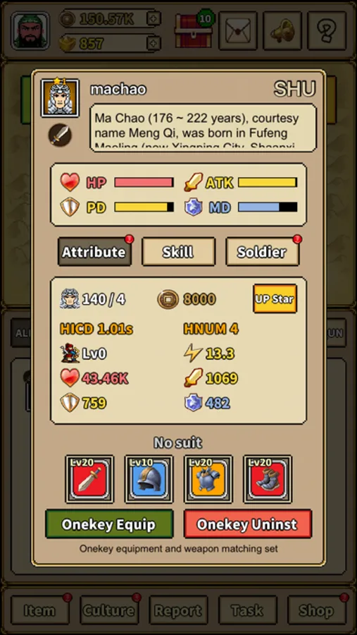 A casual Three Kingdoms Theme multi hero multi equipment cultivation game, easy to push and upgrade, designed unique skills for each hero.