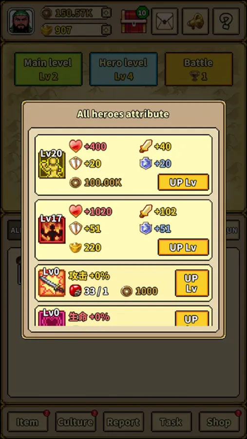 You can upgrade generals, upgrade equipment, upgrade arms, train all heroes to strengthen combat effectiveness