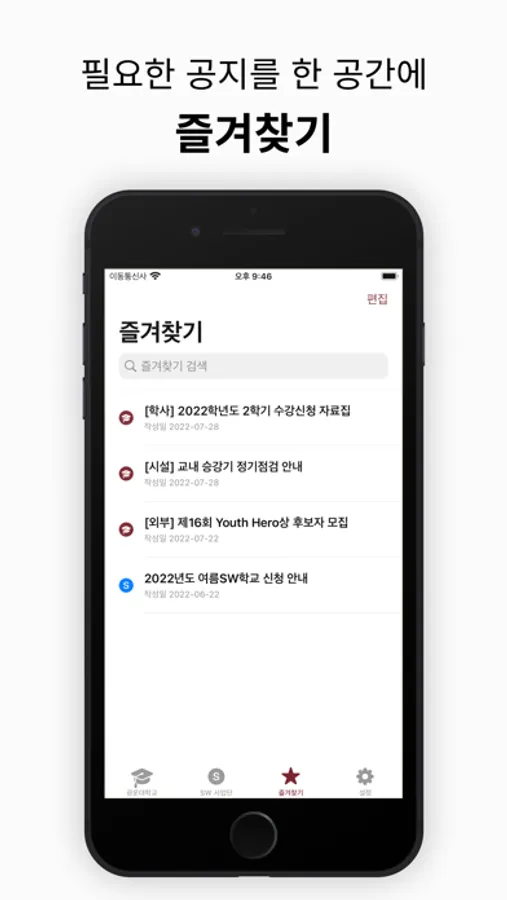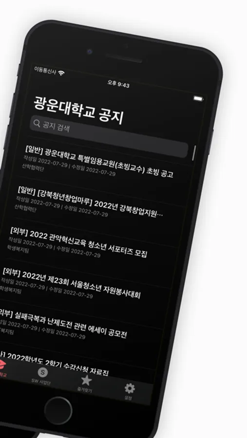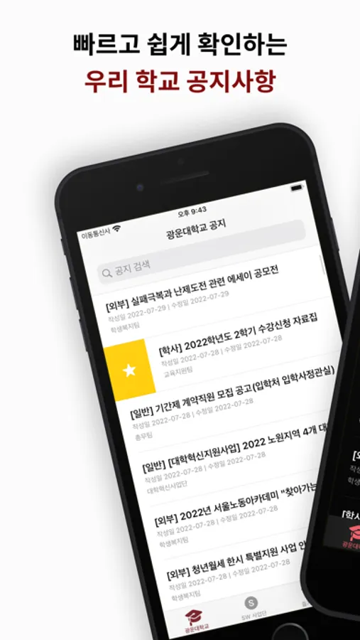 광운대학교 및 광운대학교 SW중심대학사업단의 공지사항을 간편하게 확인할 수 있는 애플리케이션입니다.