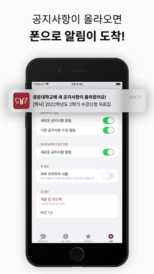 광운대학교에 공지가 올라오면 기기로 알림이 도착합니다!