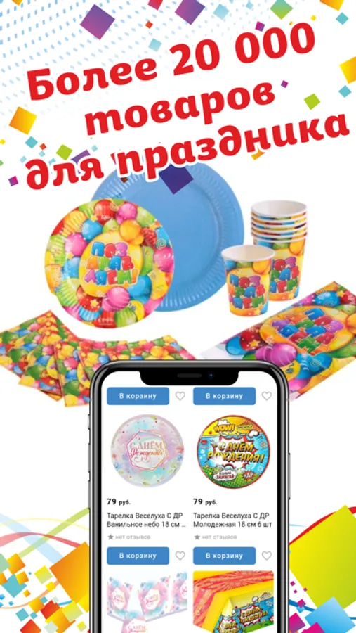В нашем приложении можно заказть букеты из шаров, карнавальную продукцию, свечи, мыльные пузыри и многое другое для проведения праздника.