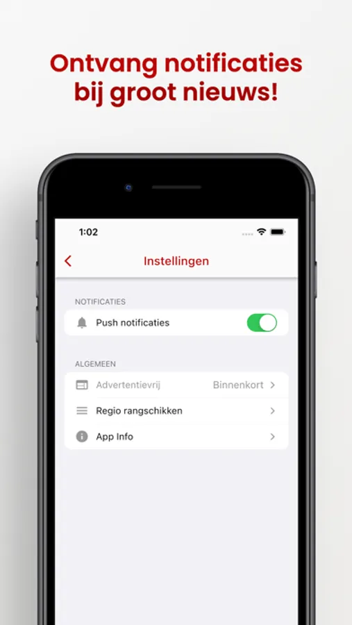 Je kunt je eigen menu samenstellen in onze app. Hierdoor kun je nieuws als eerst zien wat voor jou het belangrijkste is!