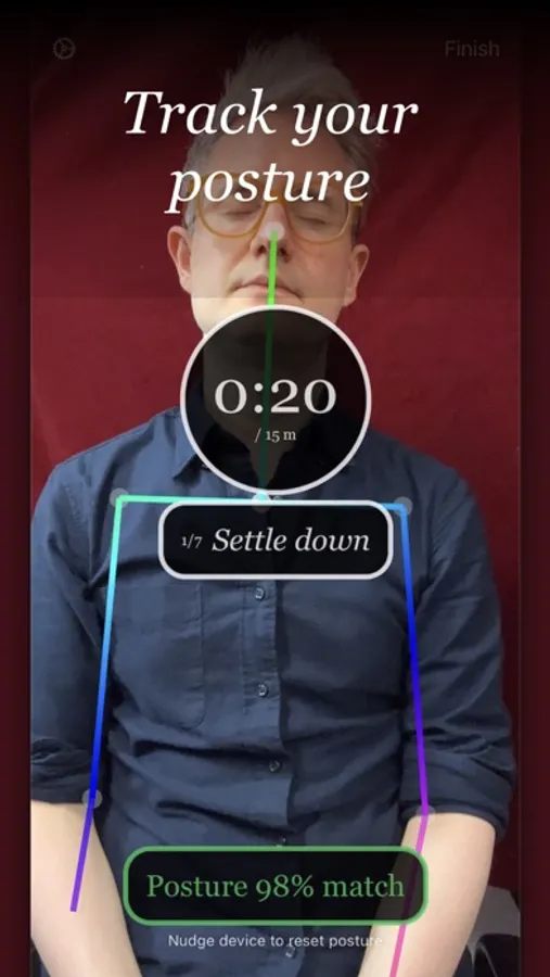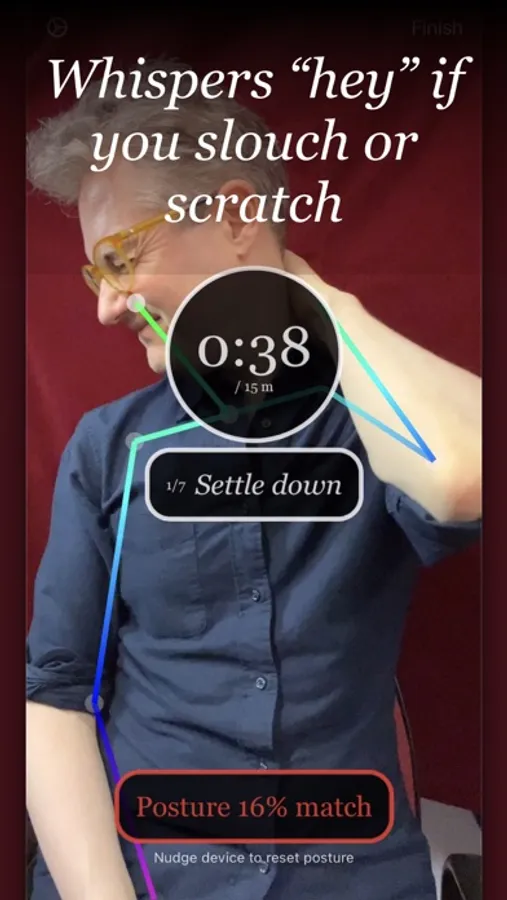 Sit Still lets you track your posture using augmented reality, so you'll maintain an upright, self-supported position while meditating. It can be gentle or, for fun, it can be very impatient!