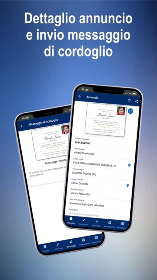 • la geolocalizzazione tramite Google Maps del luogo della veglia, delle esequie e della tumulazione