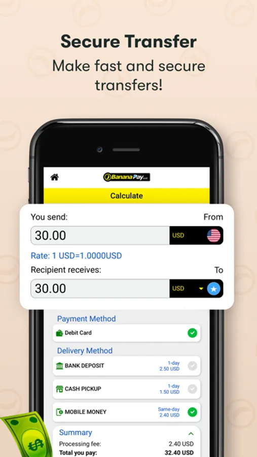 Banana Pay allows you to send money internationally at competitive exchange rates with low fees, ensuring better value for your money. We specialize in sending same day remittances and providing excellent customer service.