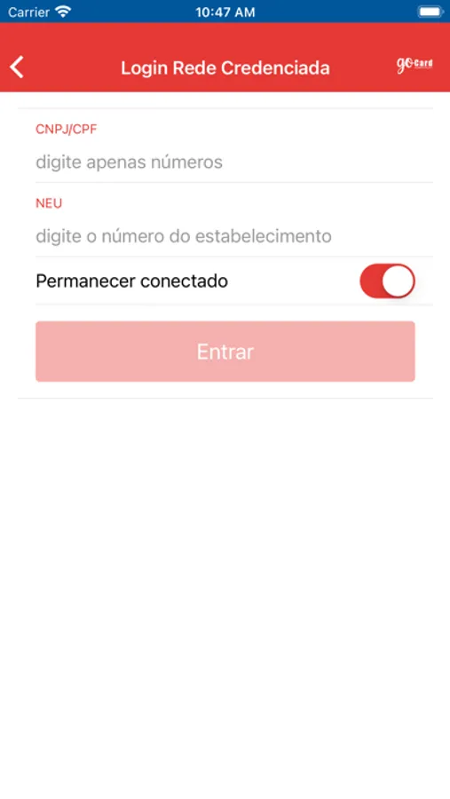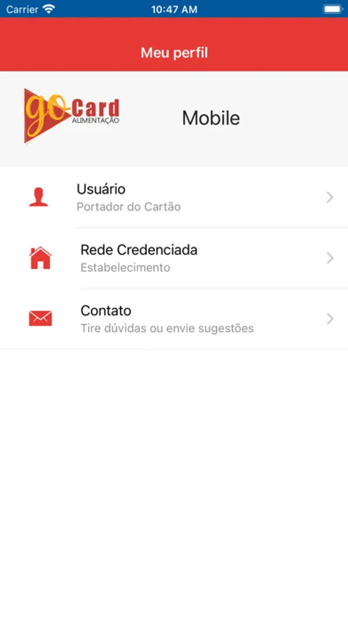 GO CARD Mobile é um aplicativo com 2 perfis de usuário: