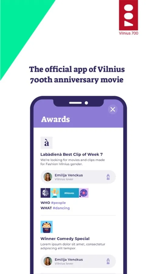 Download the app now to start submitting your creations to become part of history as one of the creators of the official Vilnius 700th anniversary movie. The first movie made by an entire city.
