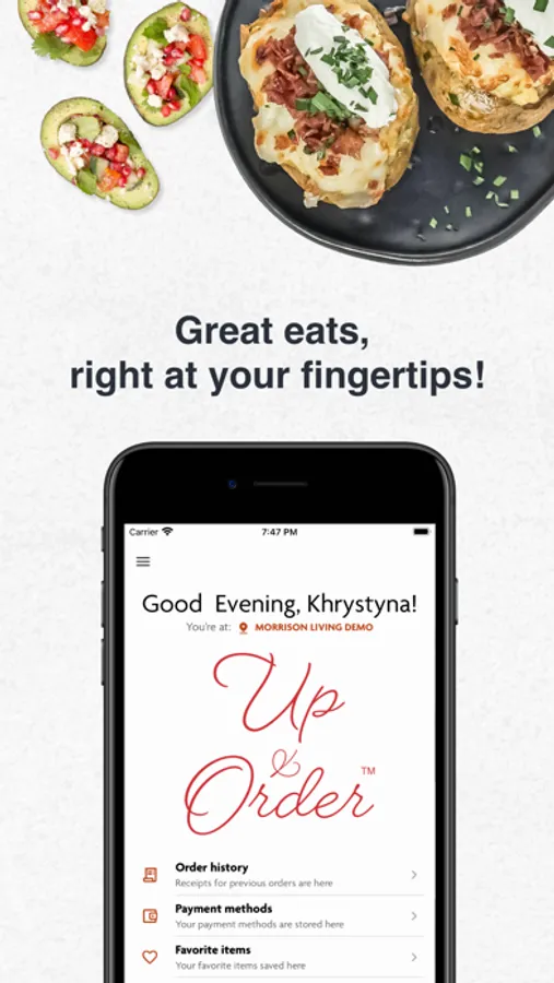 With the Up & Order app, it’s easy to pre-order and pre-pay for your favorite food and drinks made just the way you like them.