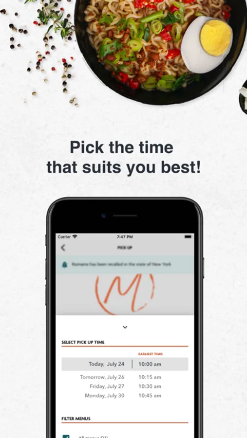 Selectable Pickup Times