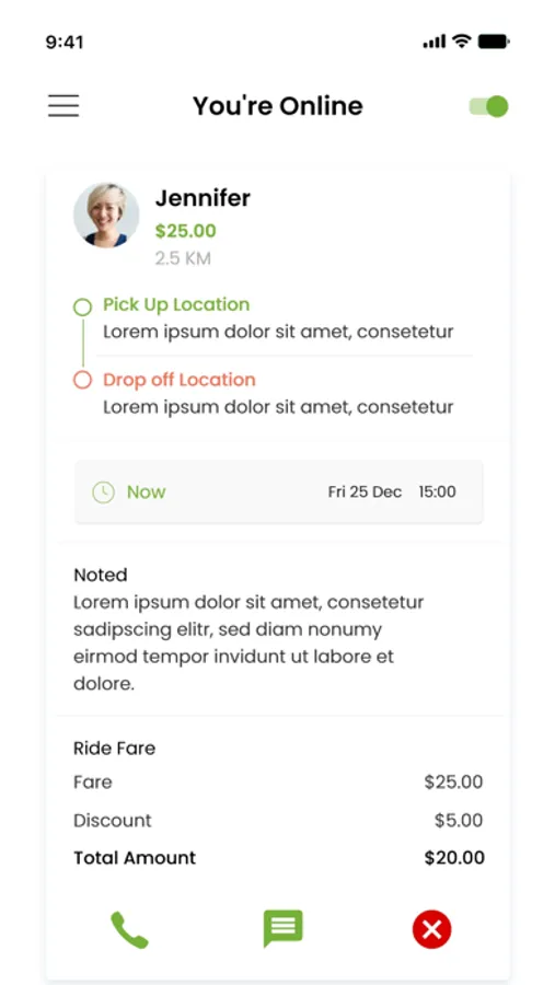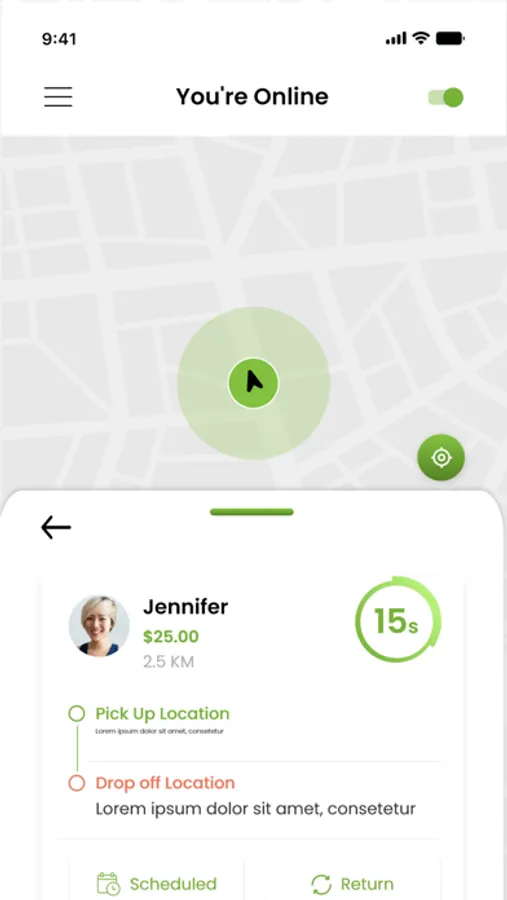 The idea behind developing this driver app is to give freedom to people passionate about taxi driving by having good driving skills. Additionally, our app provides the complete suite of possible services to drivers; they can easily accept the ride by knowing the customer's location, picking them up and dropping them to the desired location. Furthermore, our app also gives the ride forwarding privilege to our drivers, in which they can easily forward the ride to another suitable driver in case they are unable to take the ride.
