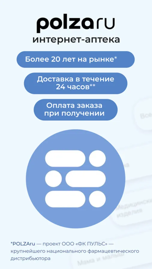 Устанавливайте мобильное приложение POLZA.ru и получайте доступ к широкому ассортименту продукции, узнавайте о наличии нужных товаров и выгодных предложениях. Онлайн-аптека POLZA.ru поможет легко выбрать, оперативно заказать и безопасно доставить любые препараты, медицинскую технику, товары для красоты и здоровья и многое другое!