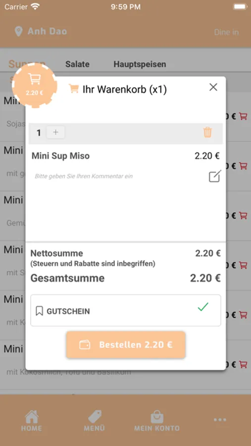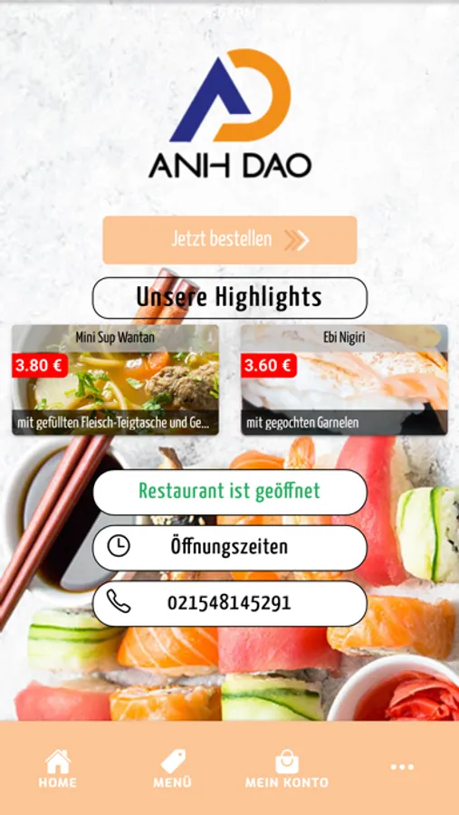 Herzlich Willkomen bei Anh Dao in Willich. Wir bedienen unsere Kunden mit Salat, Bowl Und Viel Mehr Speisen und machen das seit mehreren Jahren aus Leidenschaft. Wir freuen uns immer wieder neue Kunden unsere Herkunft näher zubringen und möchten ihnen die Möglichkeit geben, ihre Bestellung unkompliziert und total einfach abzugeben. Aus diesem Grund, möchte wir ihnen unsere neue App und unseren Online Shop vorstellen, mit dem Sie problemlos über Paypal, Bar und Kreditkarte zahlen können.