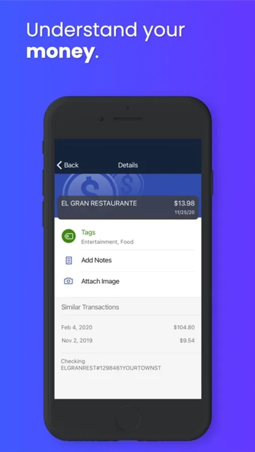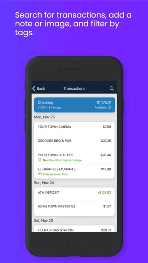 Organize transactions by adding tags or notes to checks and including photos of receipts