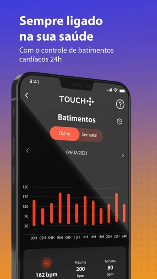 O app Touch Smart é o seu parceiro para o dia a dia! Em poucos passos, você conecta o seu Smartwatch Touch e tem acesso às funcionalidades sobre sua rotina, treinos e saúde, como notificações de chamadas, mensagens e redes sociais; + de 8 esportes; controle de batimentos cardíacos, passos, calorias e distância; modo relaxamento; e controle do sono. É um app de fácil navegação, totalmente em português, e com o simples toque de um botão, você ainda consegue assistir a vídeos tutoriais e tirar dúvidas com o nosso SAC diretamente pelo Whatsapp.