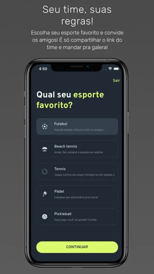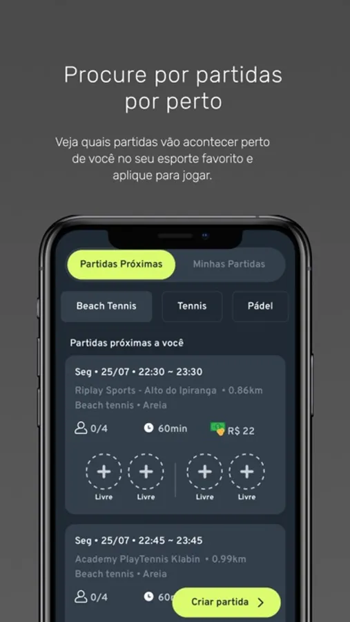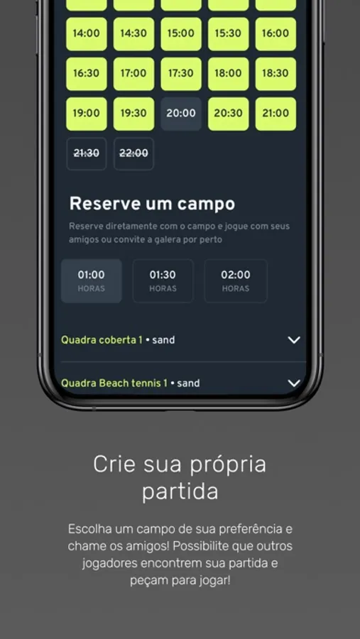 Crie partidas semanais ou avulso, escolha a unidade e compartilhe e nunca mais falte jogadores para completar sua partida!