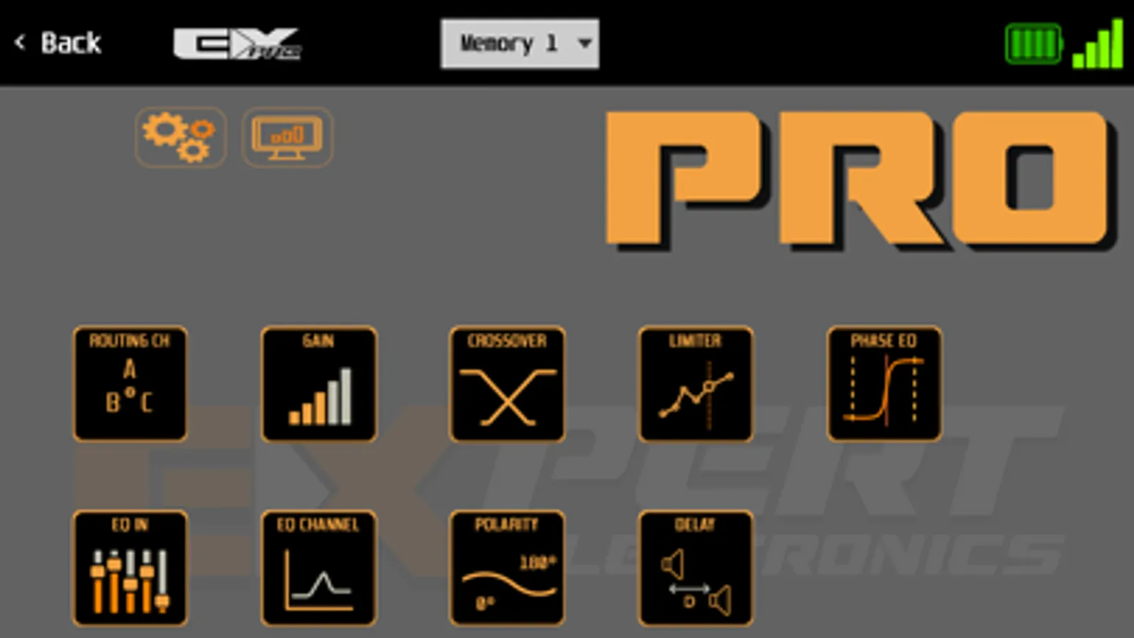 Controle do Processador de áudio EXPERT PRO8 configurável via bluetooth.