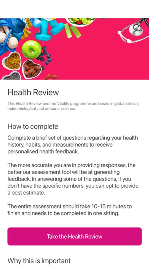 Experimental Vitality Health Review experience aimed at gathering users' feedback. Complete the experience to have a tree planted on your behalf and enter a draw to win Apple Watch Series 7.