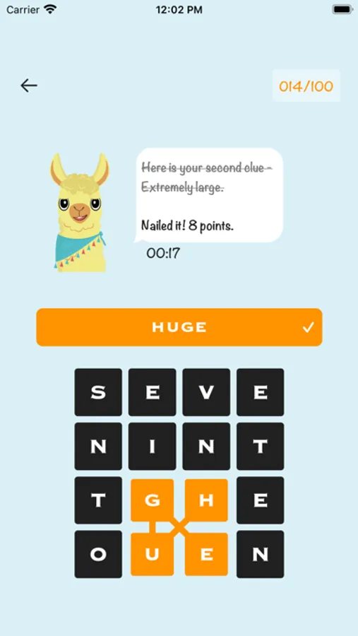 Welcome to the word game The Thinking Llama has invented. It is a mix of boggle and crossword. No points for the letters revealed but you score 2 points for each letter you guess.