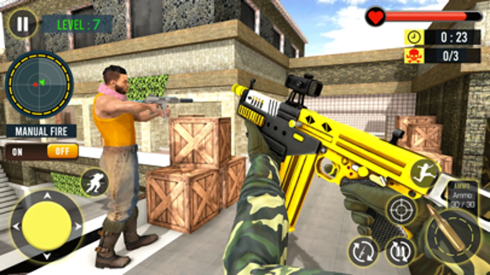 The wait is over! The best combat commando survival shooting game is here with army shooter action-packed sniper missions and some fierce sniper enemy gun fights. You play as a leading combat army FPS shooter soldier of the special ops to do some clean sweep sharp shooting in the area.