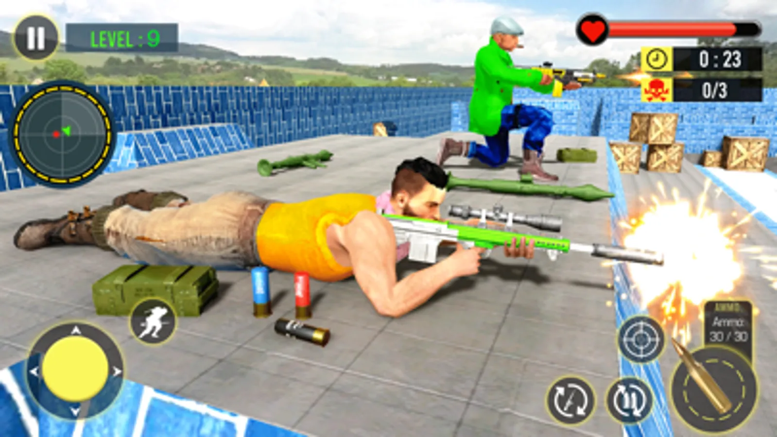 The shoot assassin army shooter is given some classified elite sniper mission related to these sniper enemy eliminations which the army commando shooter has to complete in order to get promoted to the higher ranked shoot assassin army shooter officer. This fps army man commando shooting game involves some serious commando sniper war mission mechanics that you experience in the real world. Improve your accuracy to shot the counter-terrorist sniper enemy because this army commando survival shooting game gets you one shot one kill. If you are using a sniper rifle then the scope will not just be at one point like an ordinary fps army shooter game rather it will oscillate to give you a real-life combat army fps shooter game experience.