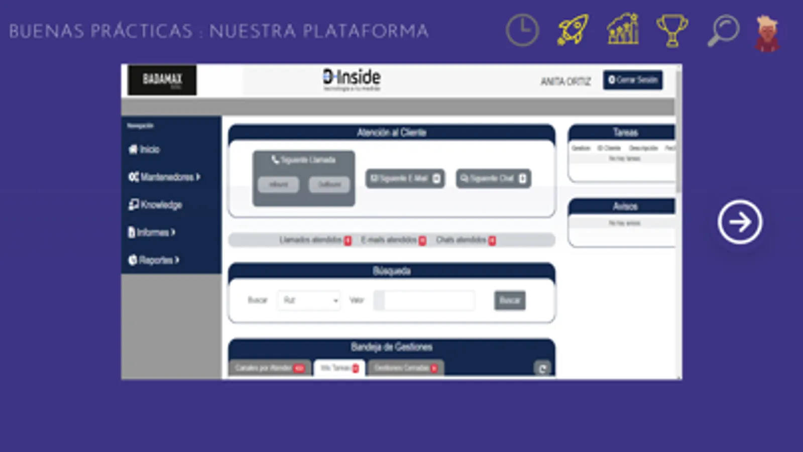 Apoyo web para perfil administrador, donde podrás revisar y descargar estadísticas en tiempo real y perfil creador para generar cuantos cursos desees impartir dentro de la organización.