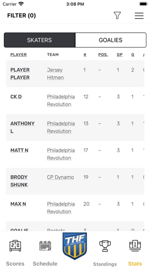 The Official Tier 1 Hockey Federation mobile app powered by GameSheet provides real-time access to player stats, standings, schedules, and game results.