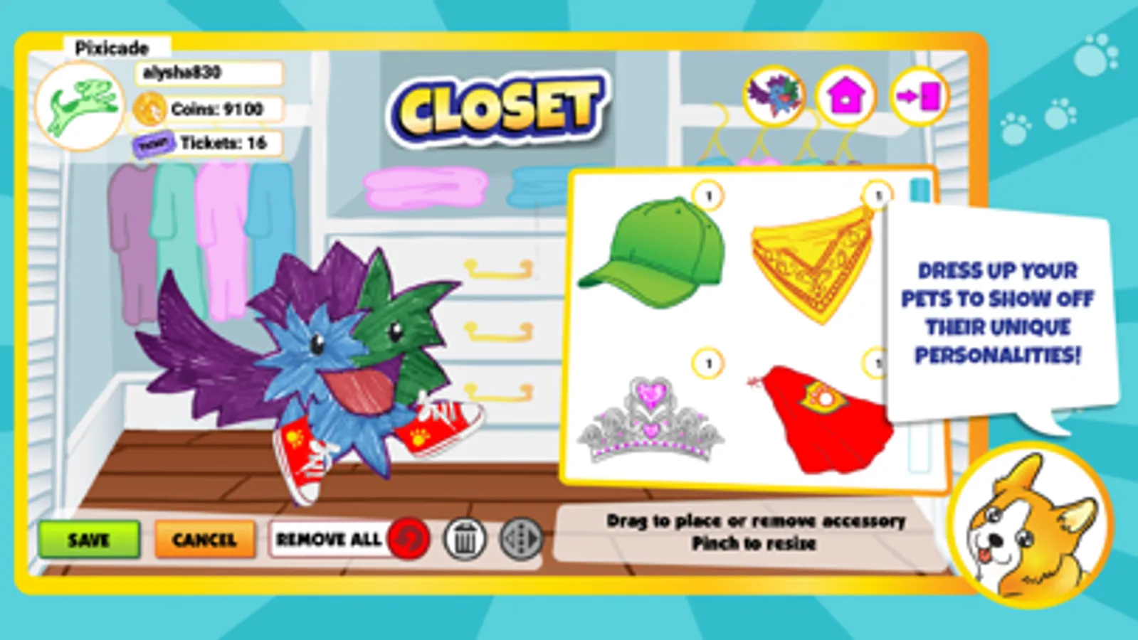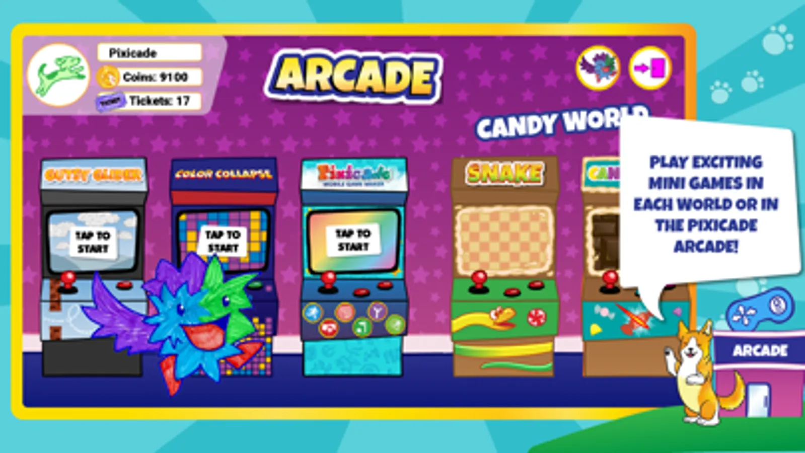 * Connect to the Pixicade Mobile Game Maker Arcade and play exciting Pixicade games with your Pets