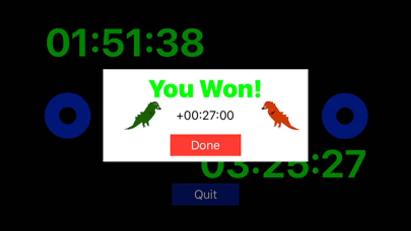 You begin setting out on your conquest to acquire the most amount of time from as many people that you can find nearby that have the app. 3-2-1-GO! the battle begins with a countdown and immediately immerses you in a unique challenge to tap the blue buttons the fastest. Use your skills to tap the fastest. The faster you tap the more time gets sucked from your opponent. Be careful, the longer the battle goes on, the more difficult it becomes, and the times at stake for each button press are greatly increased.
