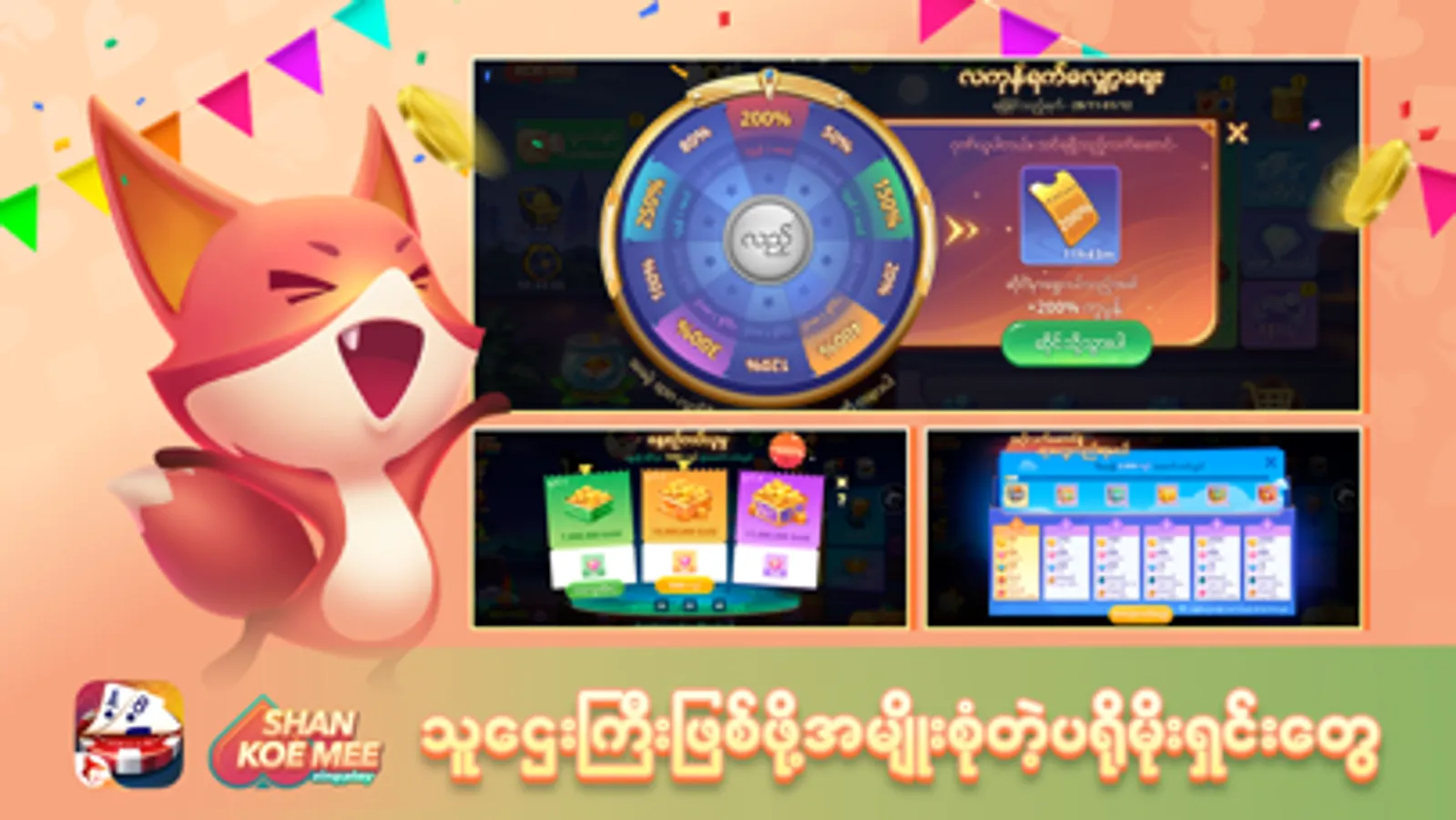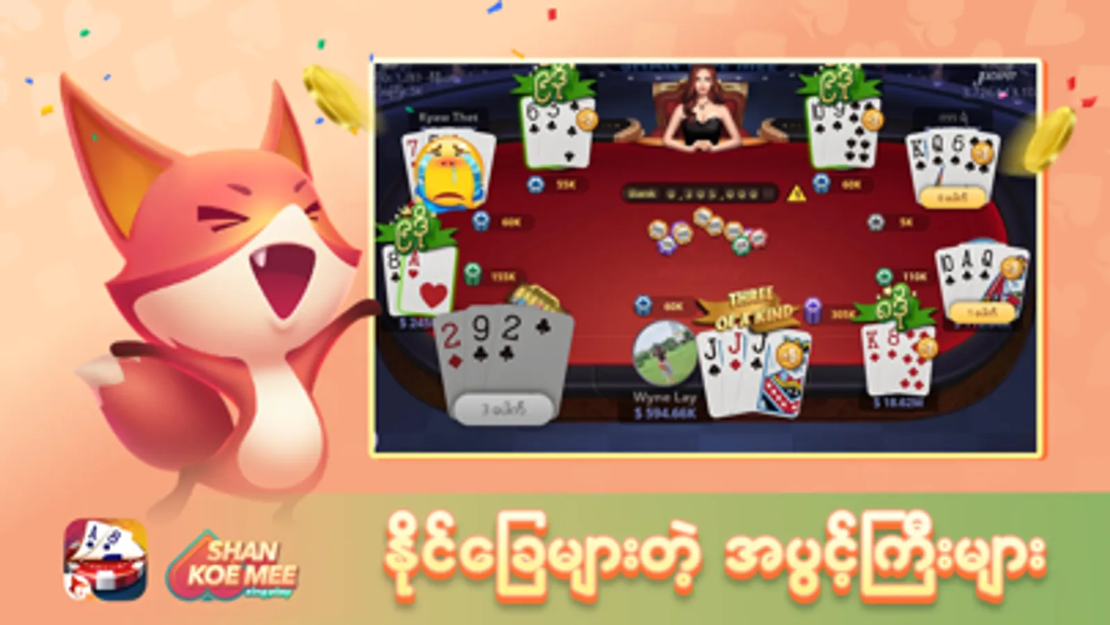 A game portal where you can play most popular Myanmar games in just one app: Shan Koe Mee is the most famous and popular card game in Myanmar. When playing Shan Koe Mee, the player needs to think not only about betting and draw cards but also about getting highest points to compete with the banker.