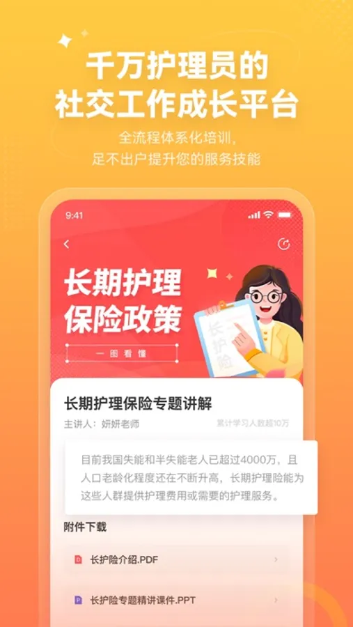 康傅理e家是康傅理公司专为千万护理员人群打造的社交工作成长平台
