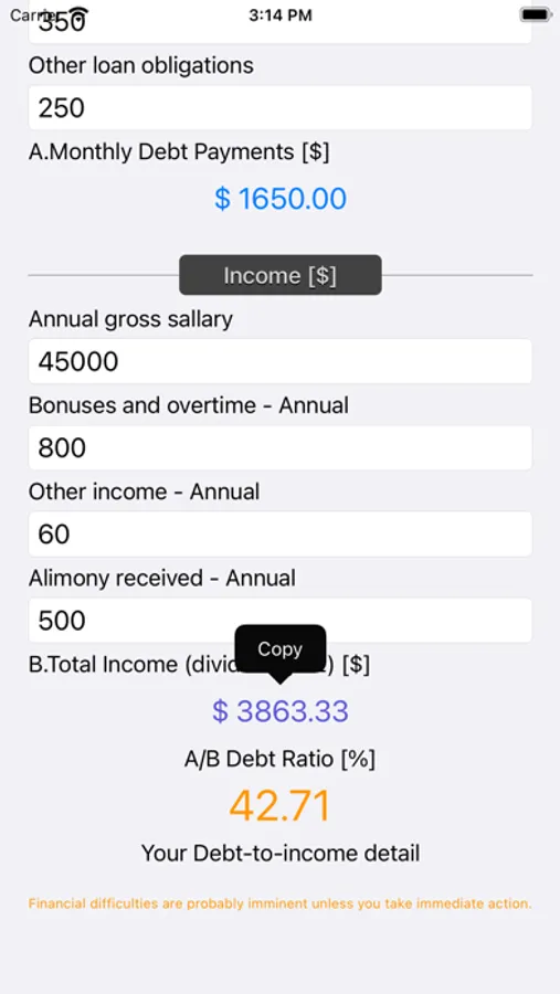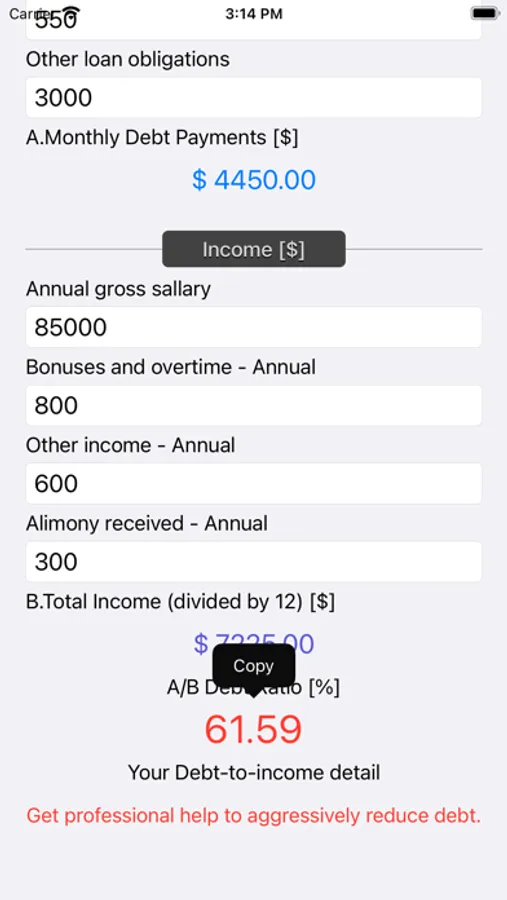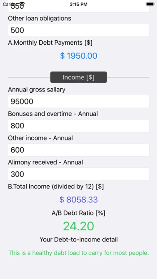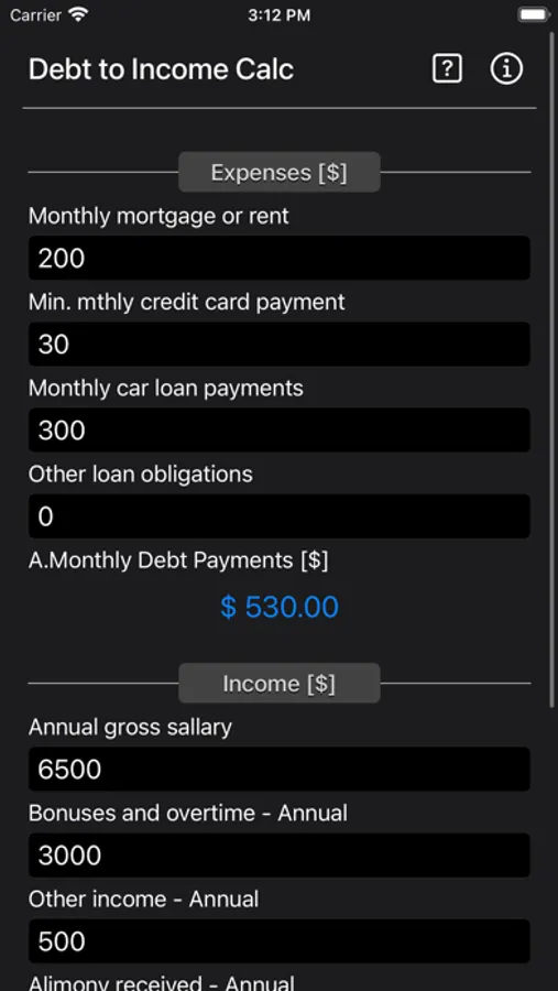 Debt 2 Income Calculator, This debt to income ratio app has been created to help you calculate how much debt you can afford. Use this app to determine the ratio between your current income and current debt.