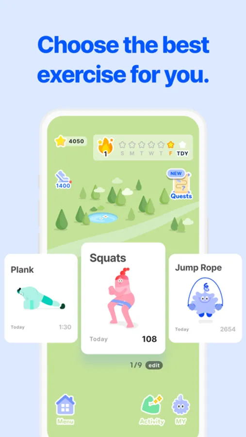 5. Boost Your Motivation: Workouts can be fun! Meet our charming characters, climb levels, and collect badges.