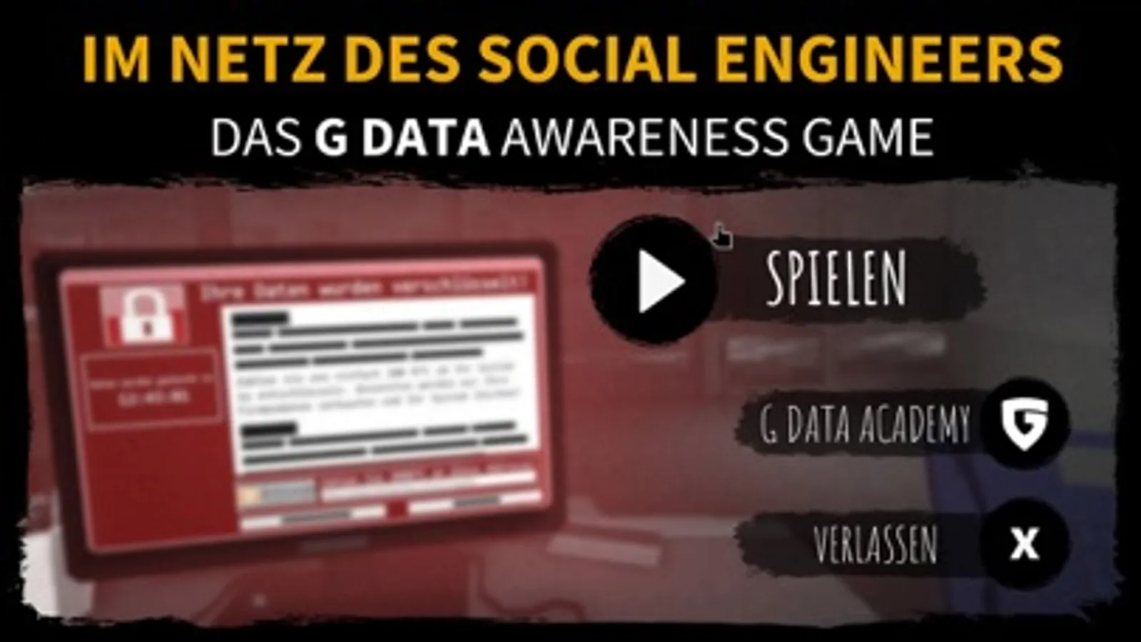 Ein "Security Awareness Training" einmal anders. Spielen Sie unsere Demo und holen Sie sich dann am besten die Vollversion des G DATA Awareness Games "Im Netz des Social Engineers".