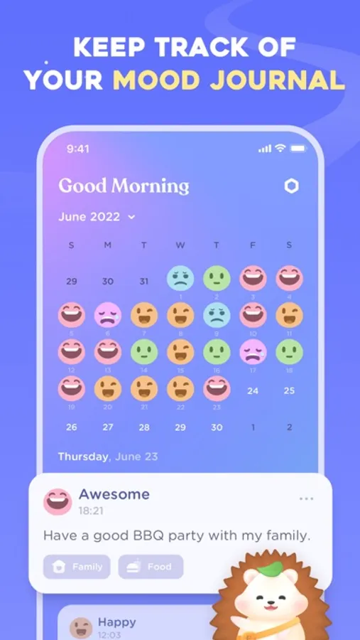 【Mood Tracker】: Write down how you feel today, when you encounter something happy or sad, or when you need to vent. You can record different mood of the day and generate a timeline.