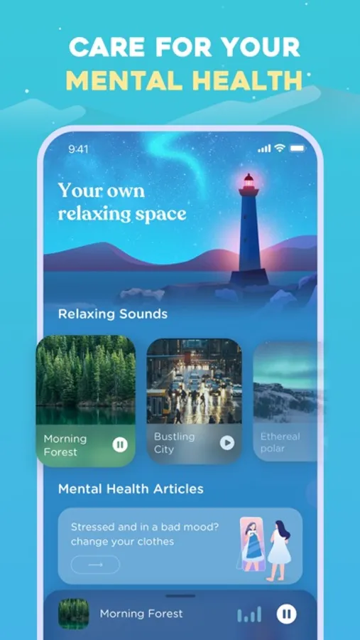 【Relaxing Space】: 10+ immersive nature soundscapes, including "Summer Night", "Morning Forest", "Bustling City", which is combined with different sounds to heal your mental.