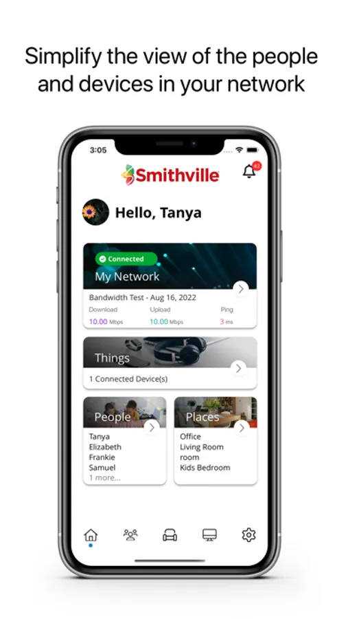 Customize your home Wi-Fi experience with Smithville CommandIQ. From utilizing parental controls, preventing unwanted content, to prioritizing devices, you create a unique home experience. Protect your home with network security, password, and SSID management.