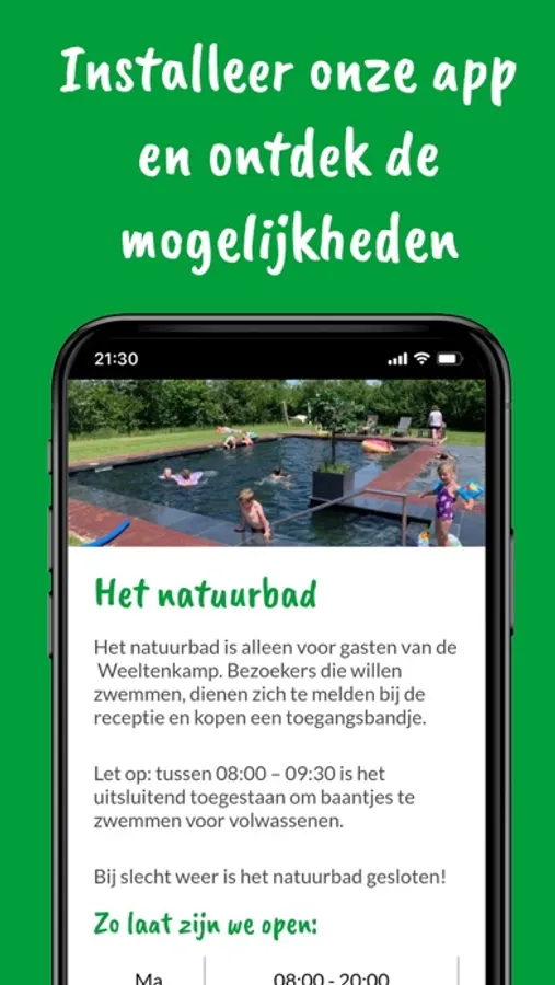 In de app kun je alles lezen over de mogelijkheden op de camping, broodjes of snacks bestellen of onze eropuit tips. Download onze app en ontdek de mogelijkheden!
