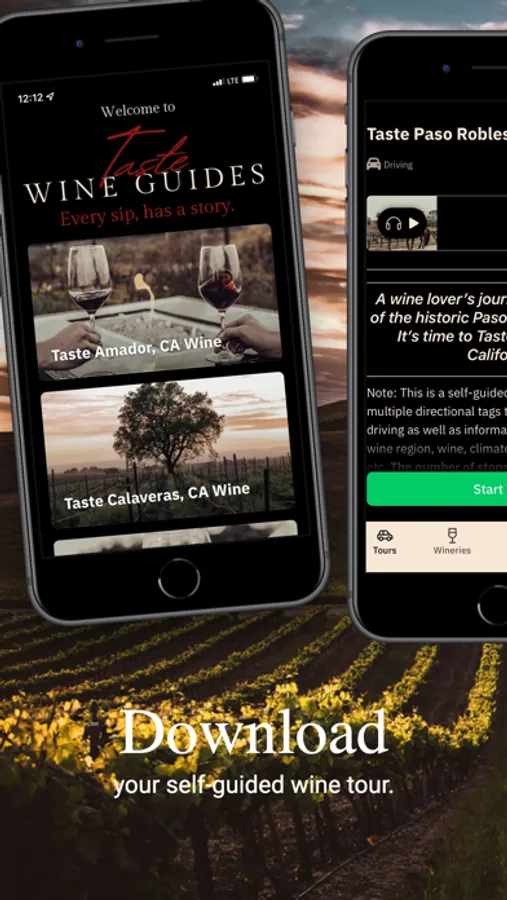 Taste Wine Guides is the worlds 1st in car audio guided gps wine tasting app. Download the tour and begin driving to experience an immersive wine tour that teaches you tasting room etiquette, wine tasting tips, rich area history and much more, all from the safety and comfort of your own vehicle.