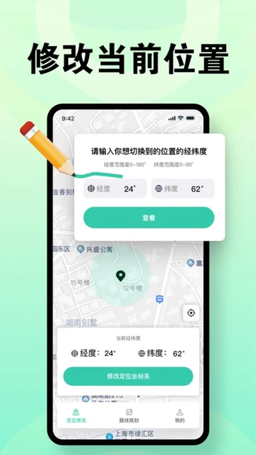 1、 修改定位:可以任意修改你的实时位置以及经纬度
