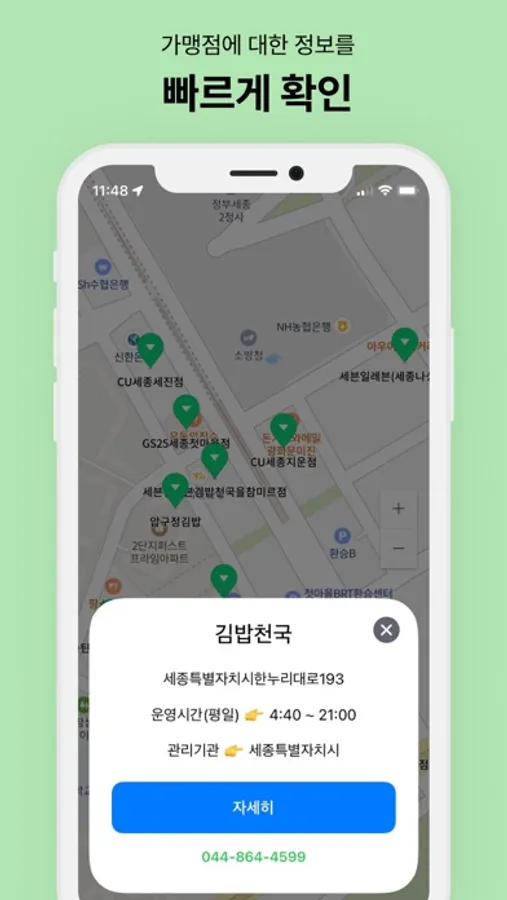 - 내 근처에 가맹점들을 한 눈에 보기 쉽게 지도에 표시됩니다.