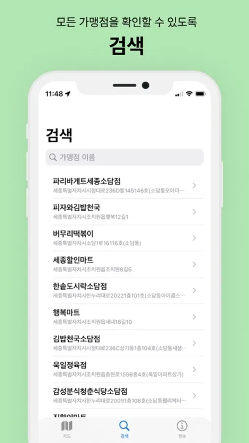 - 모든 가맹점들이 목록화하여 보실 수 있습니다
