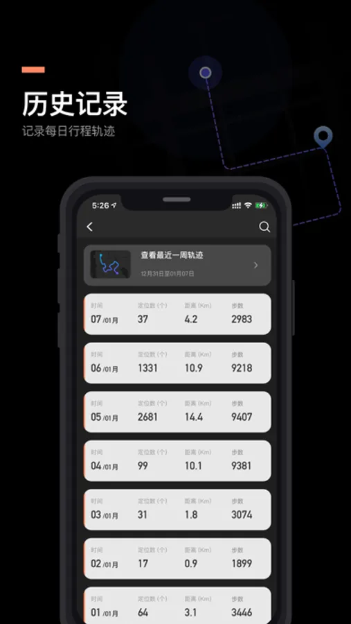 - 后台自动记录您的出行轨迹,即使被杀掉也能记录
